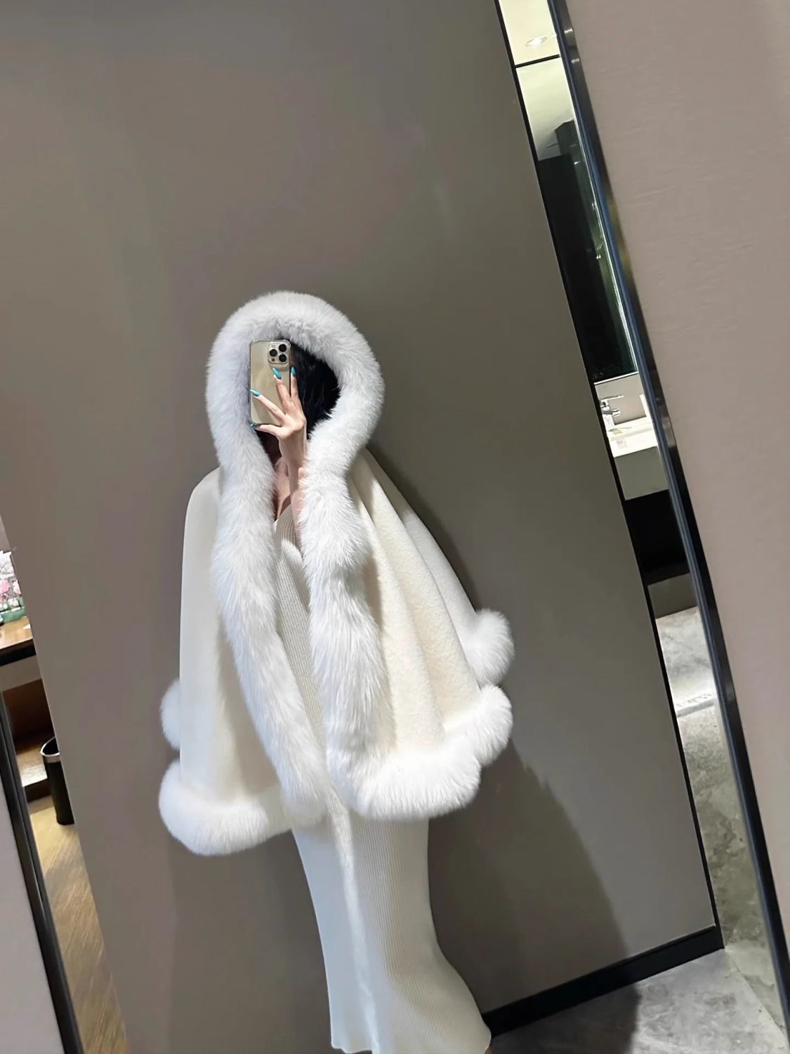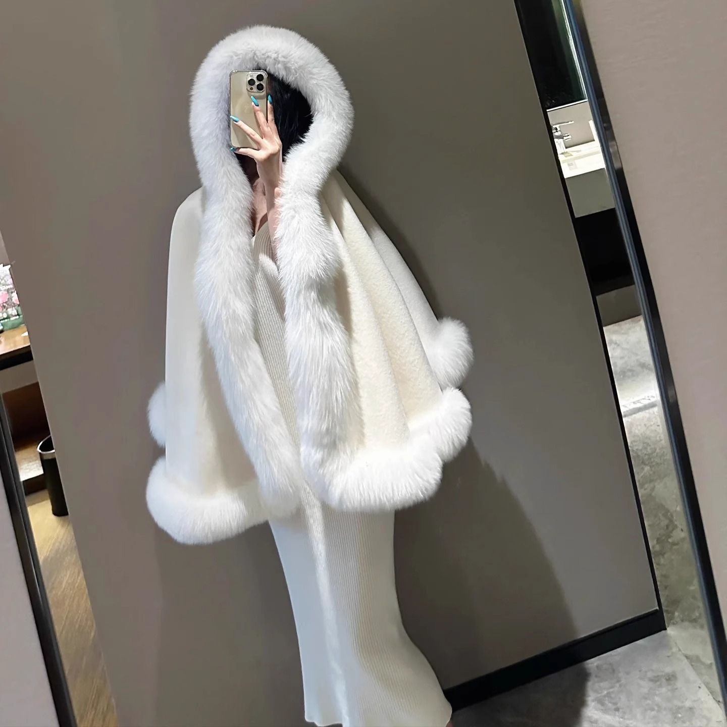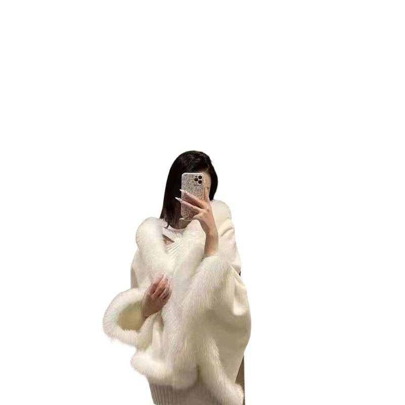 Пушистая верхняя одежда, женский плащ, шаль с капюшоном, новый воротник из искусственного лисьего меха, белый плащ Лолиты, верхняя одежда