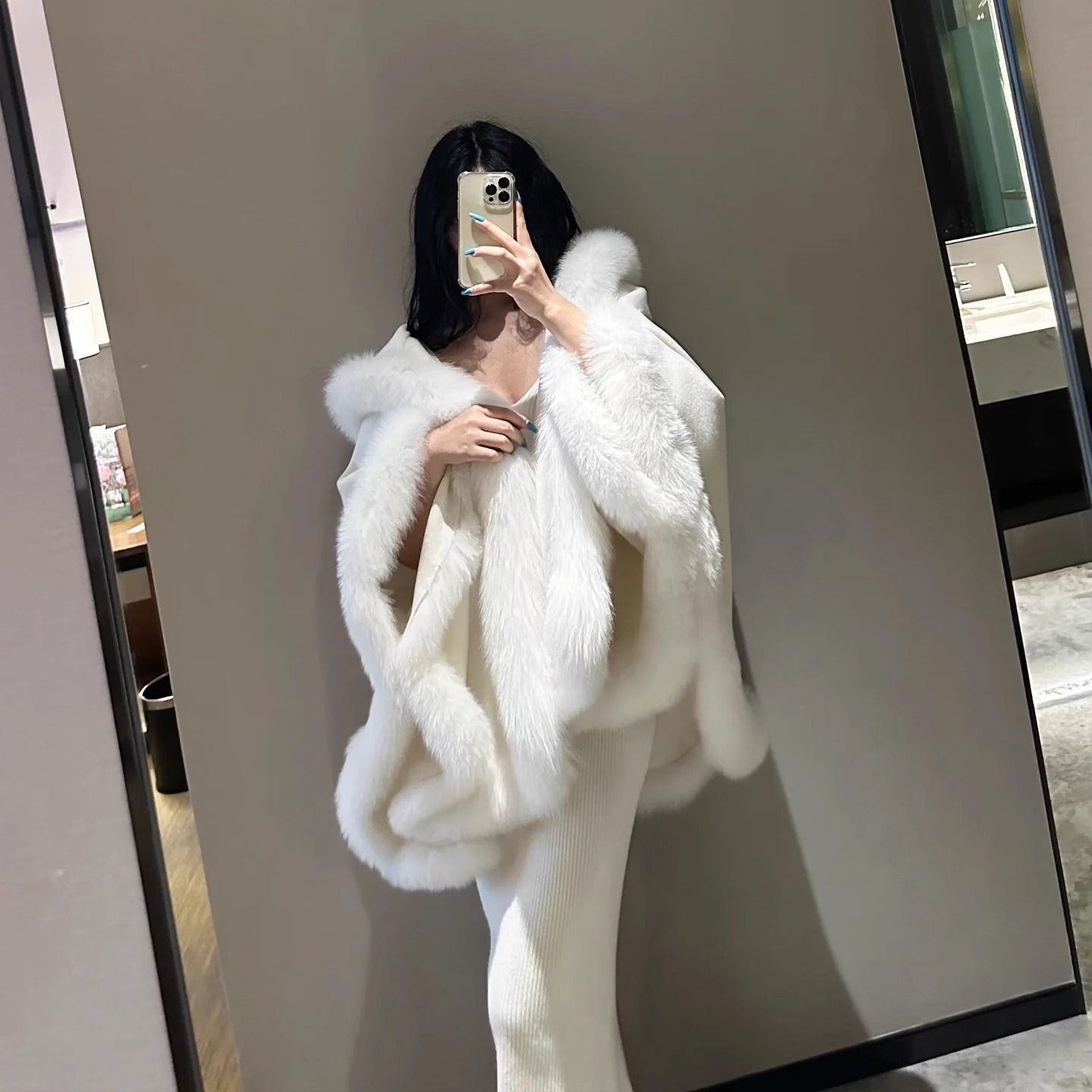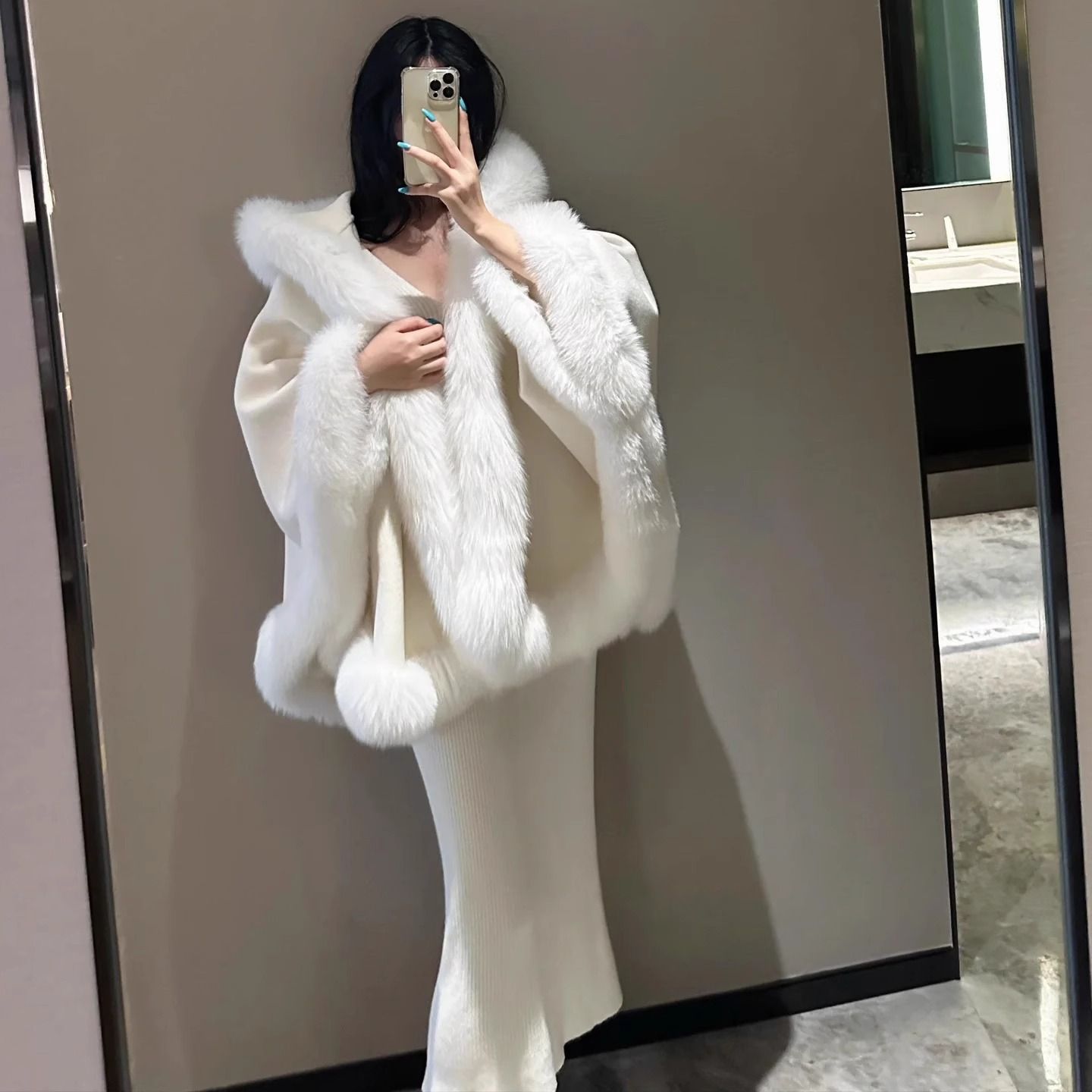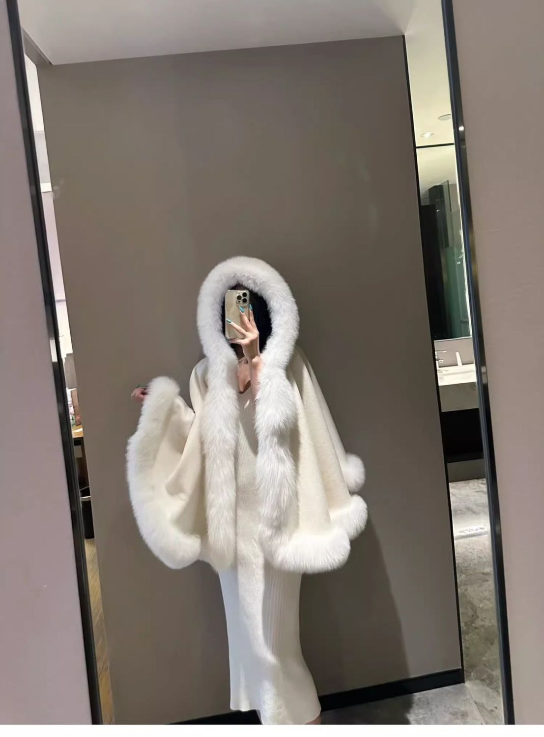 Пушистая верхняя одежда, женский плащ, шаль с капюшоном, новый воротник из искусственного лисьего меха, белый плащ Лолиты, верхняя одежда
