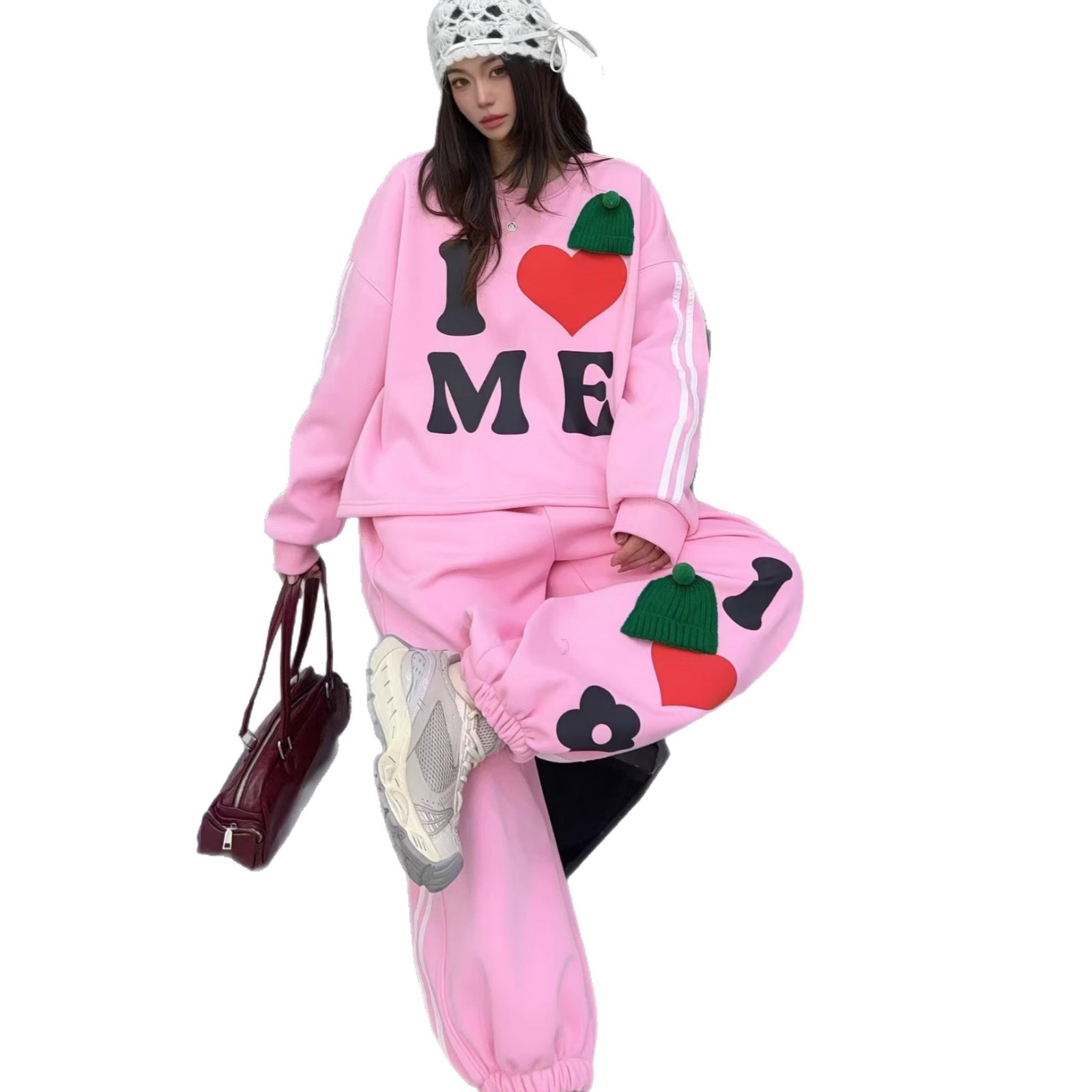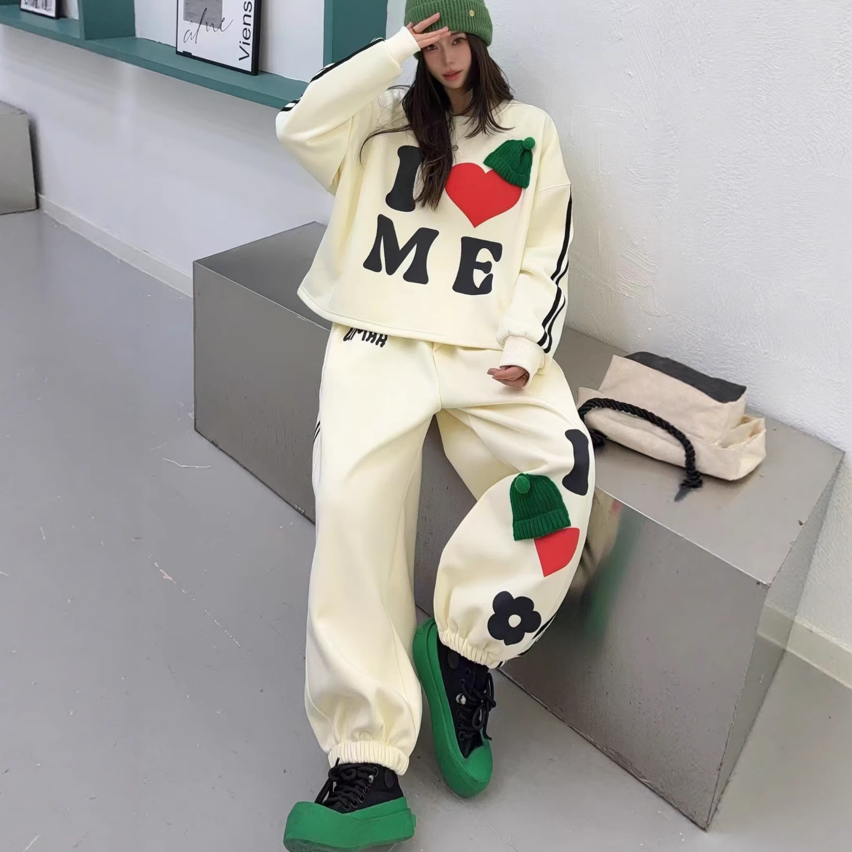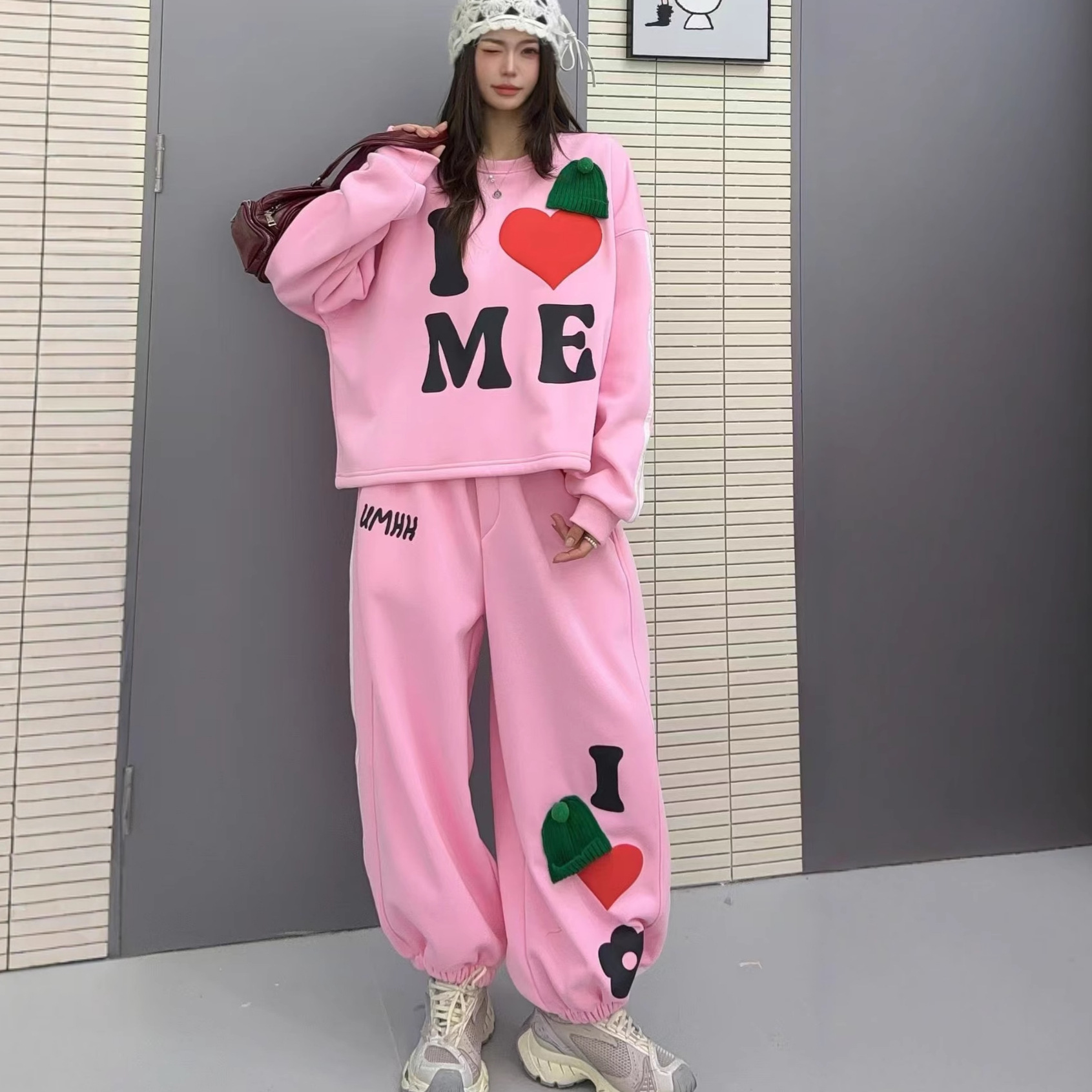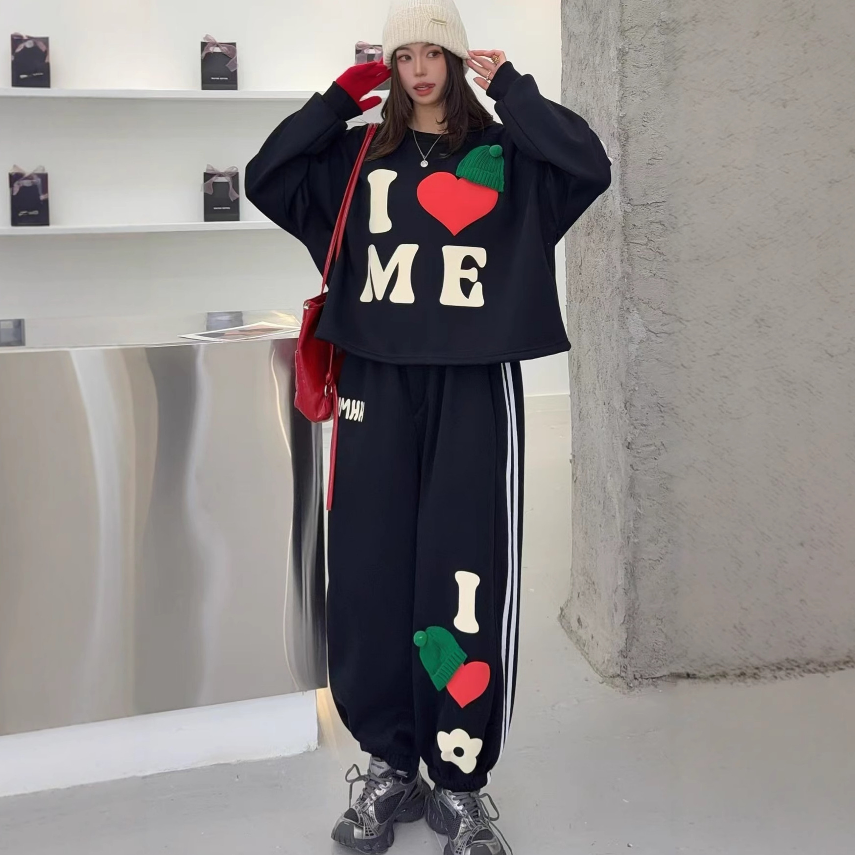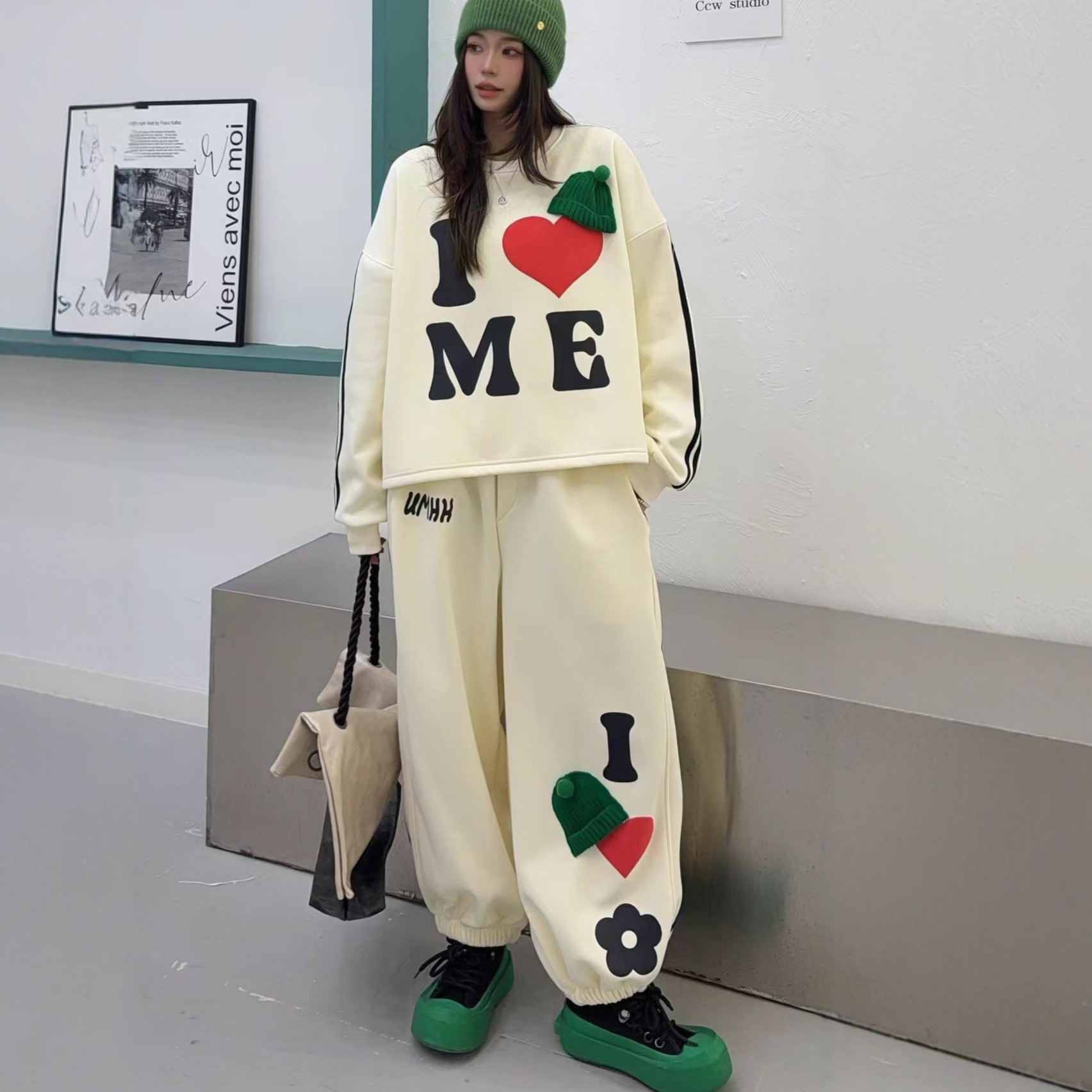 Флисовый костюм женский осенне-зимний декоративный граффити в виде сердца цельный флисовый свитшот повседневные спортивные спортивные штаны-морковка комплект из двух предметов
