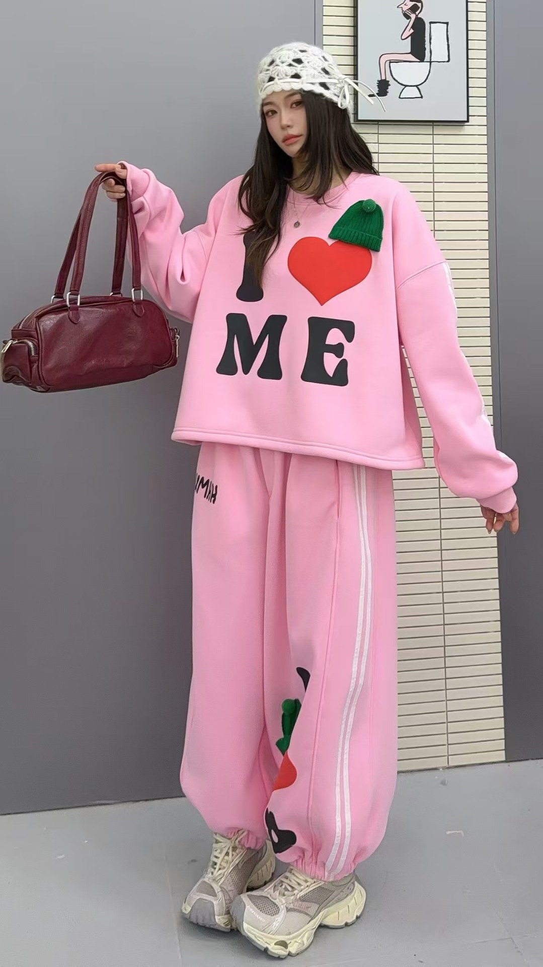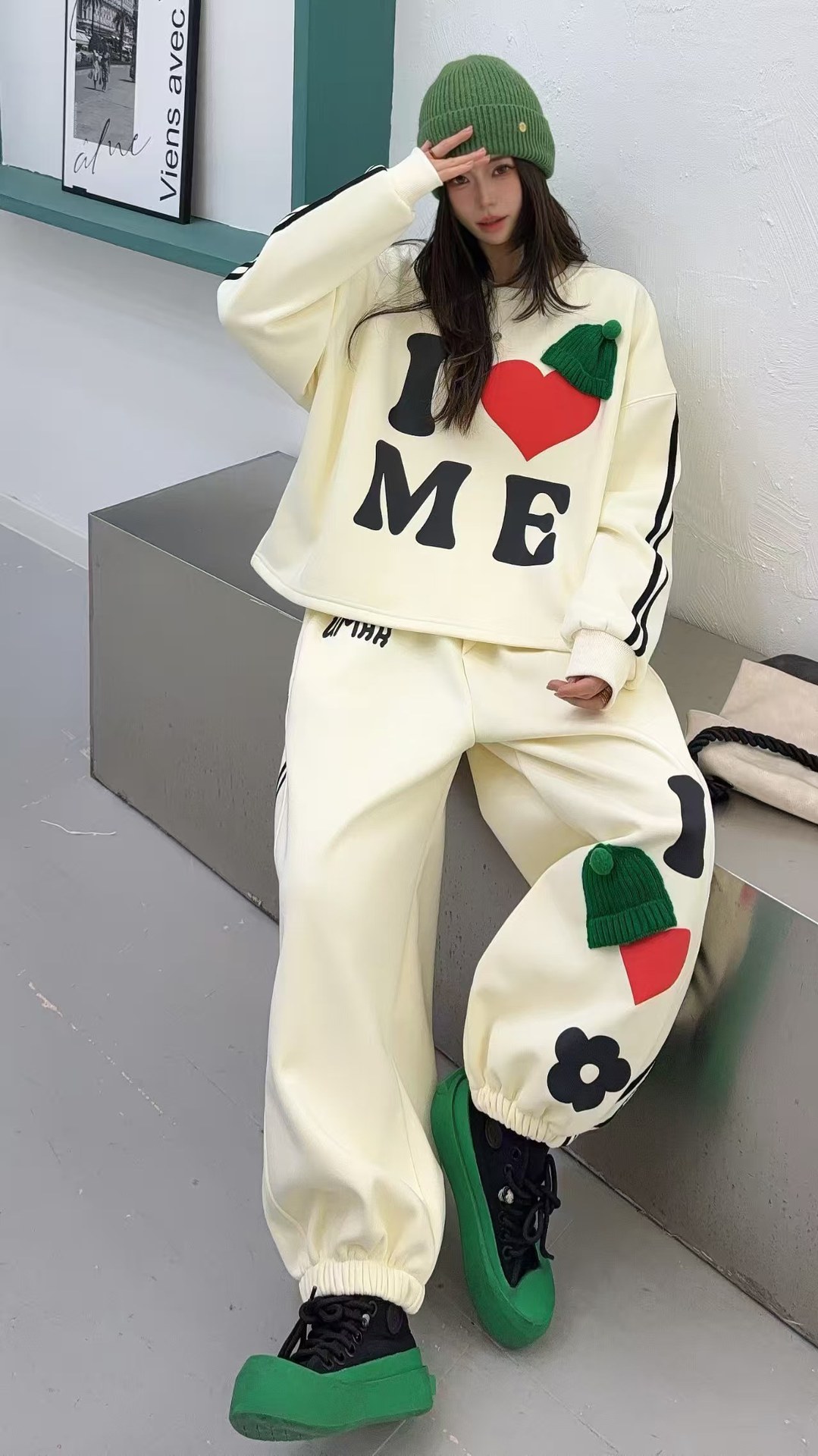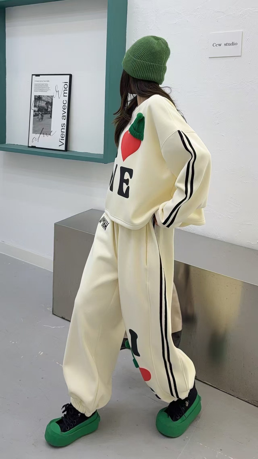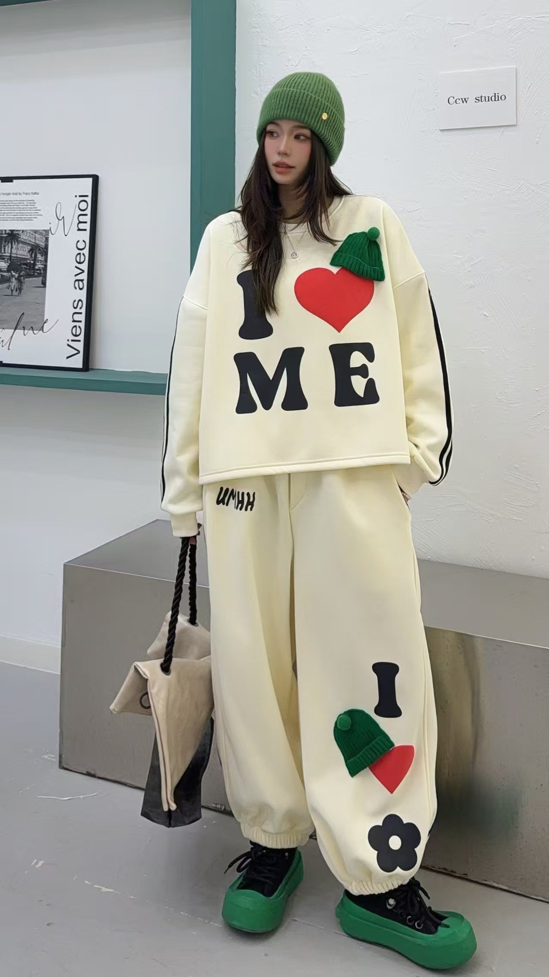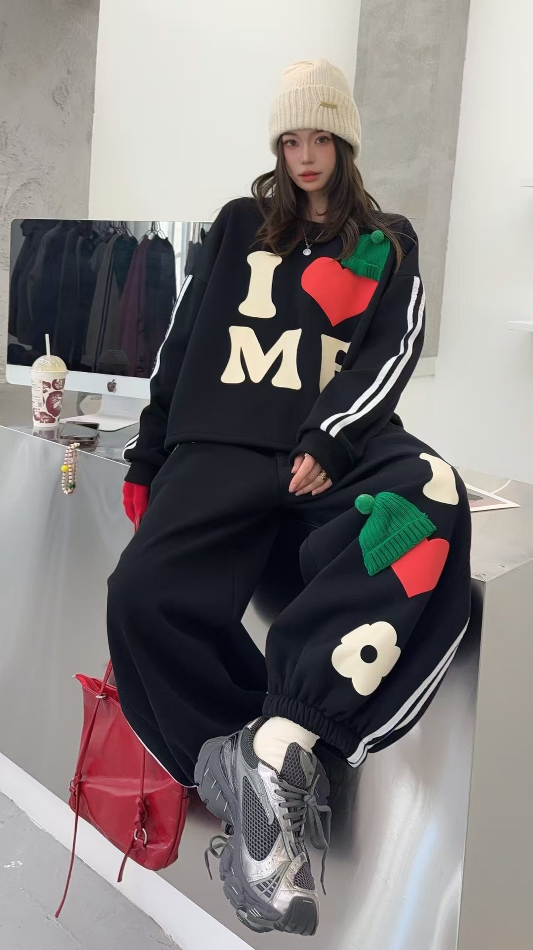 Флисовый костюм женский осенне-зимний декоративный граффити в виде сердца цельный флисовый свитшот повседневные спортивные спортивные штаны-морковка комплект из двух предметов