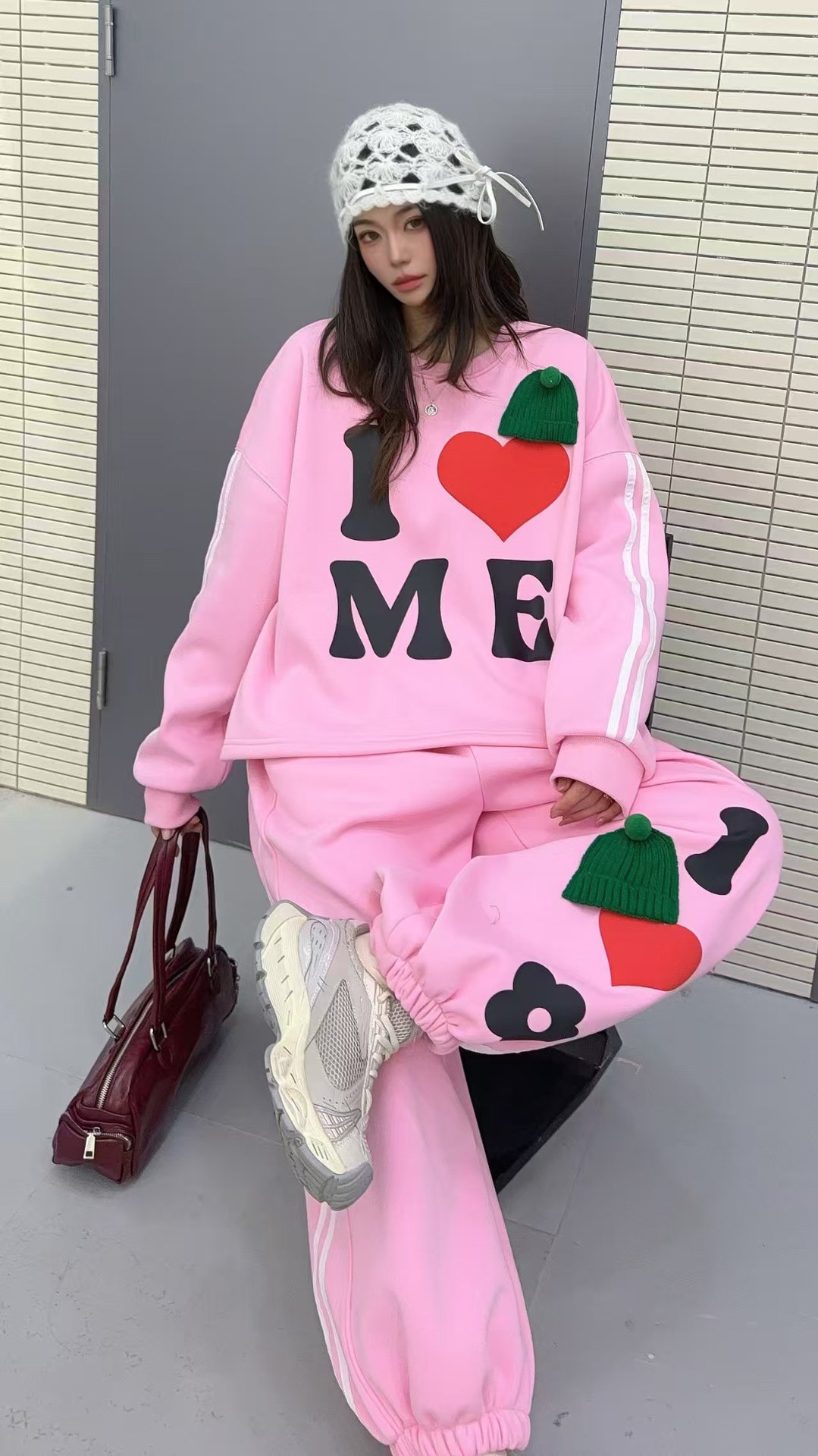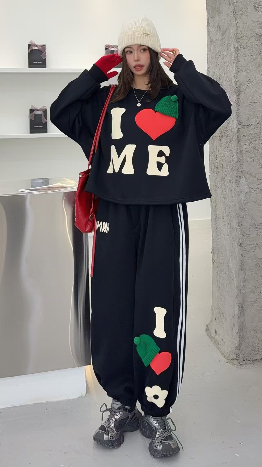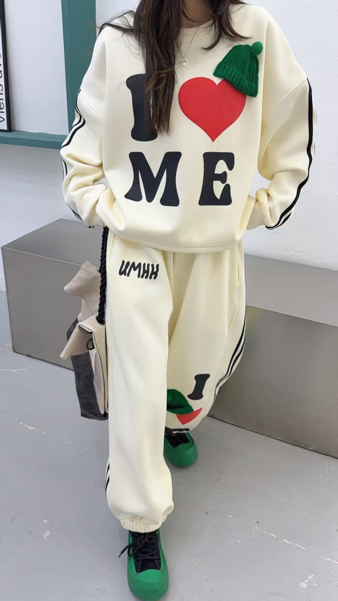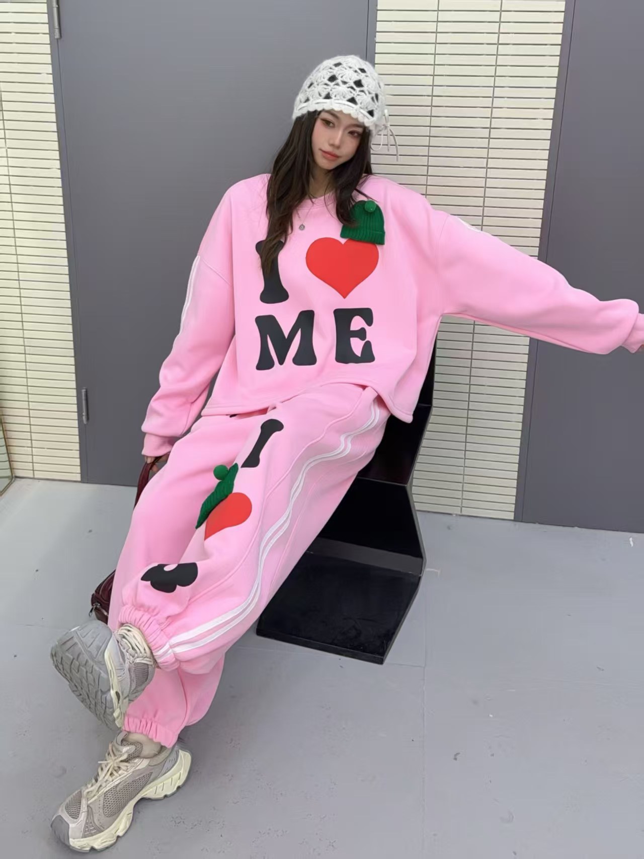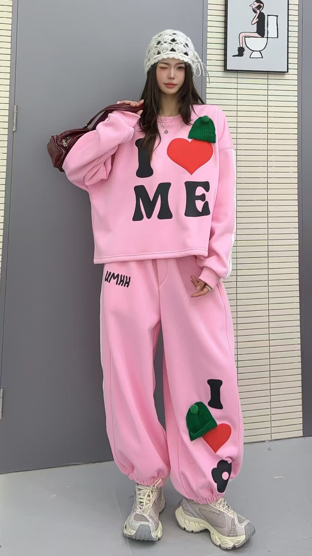 Флисовый костюм женский осенне-зимний декоративный граффити в виде сердца цельный флисовый свитшот повседневные спортивные спортивные штаны-морковка комплект из двух предметов