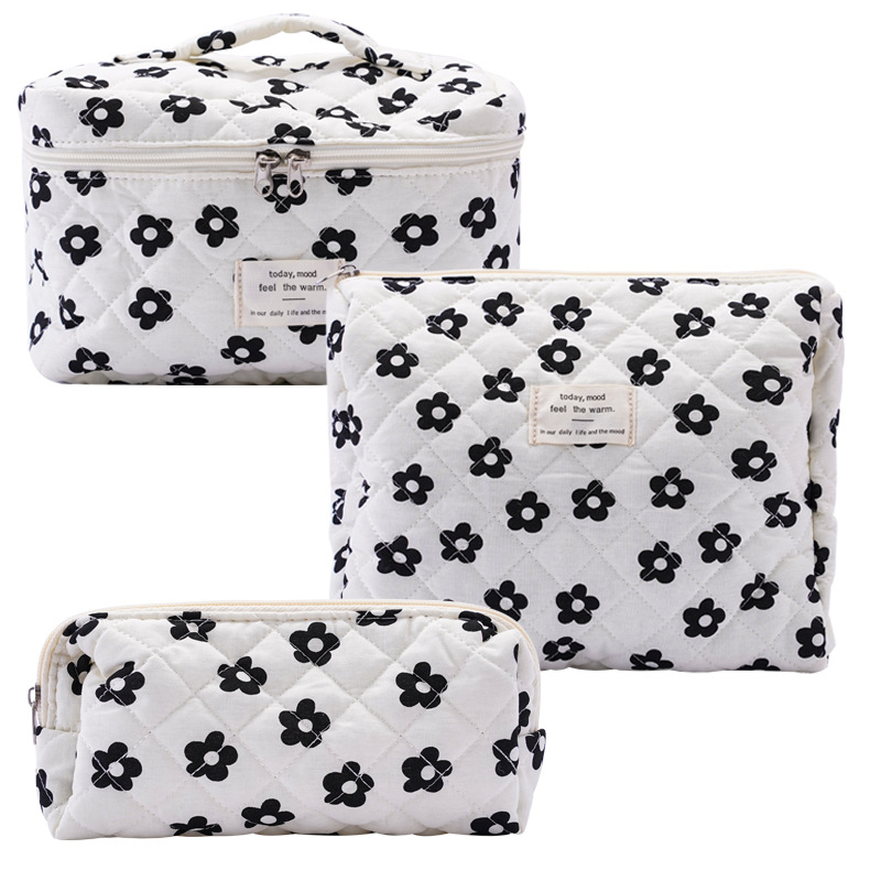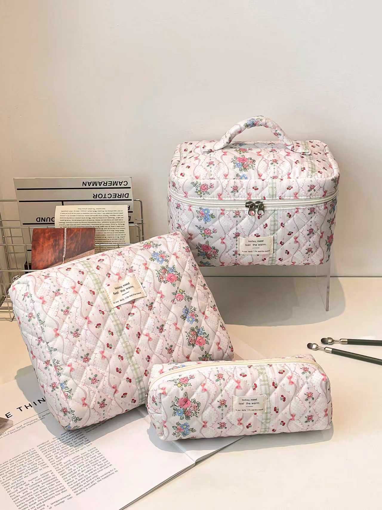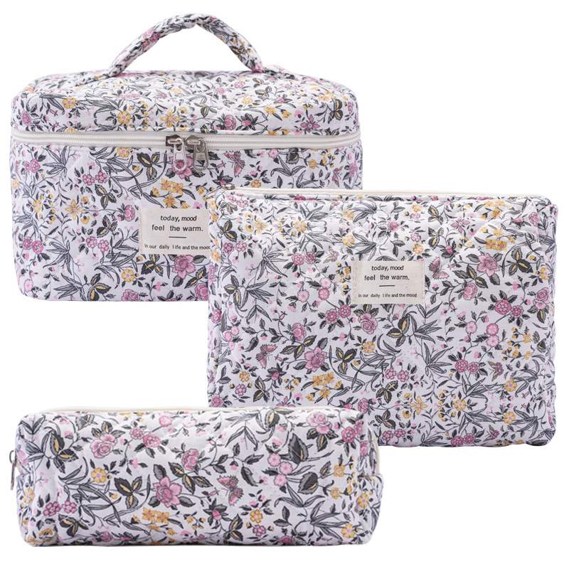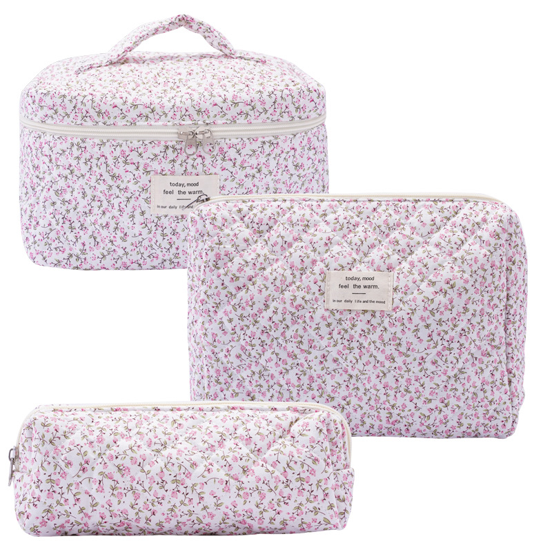 Портативная косметичка большой емкости, маленькая цветочная сумка для хранения, портативная стеганая хлопковая сумка с милыми цветами, для путешествий, студентов