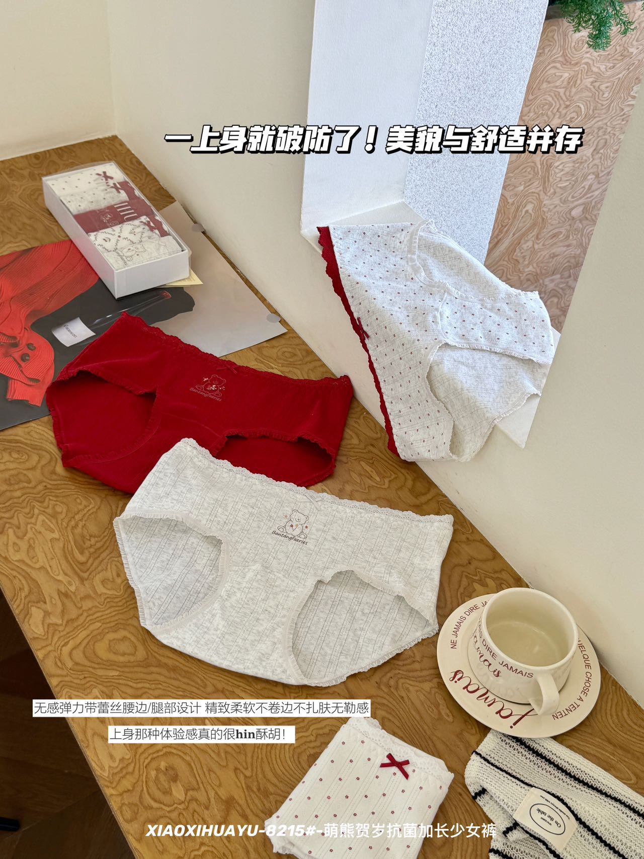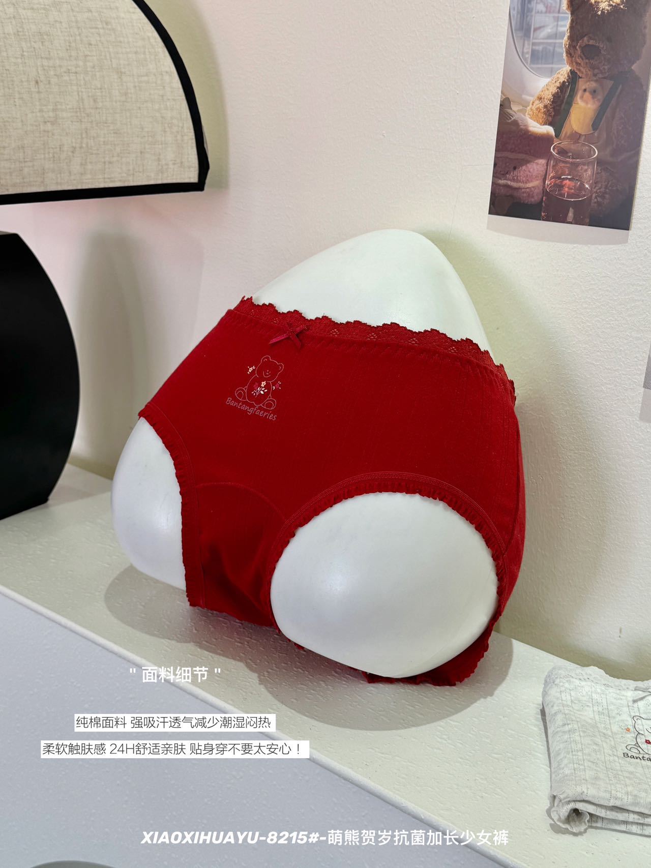 [Прямая трансляция эксклюзивно в честь Года Кобы] 8215 # Милый медведь, новогоднее 10А, антибактериальное нижнее белье с удлиненной промежностью, красное нижнее белье для женщин