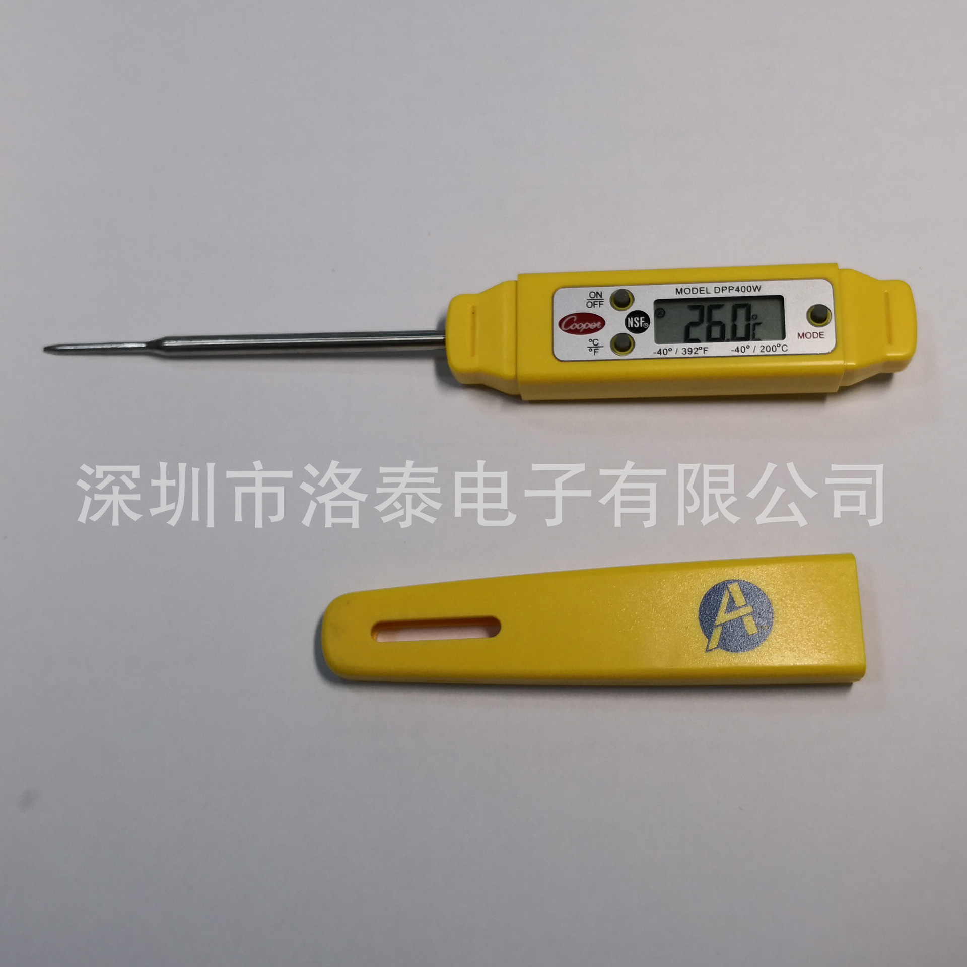 - 本防水型数字温度计经美国NSF认证,且可自动关机。测量准确方便,是星级酒店测量食物,饮品的理想选择。