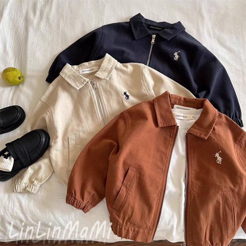 Детская верхняя одежда весенне-осеннего корейского стиля, новые товары для мальчиков и девочек, стильная верхняя одежда с вышитыми лацканами, детские короткие рубашки на молнии, модные