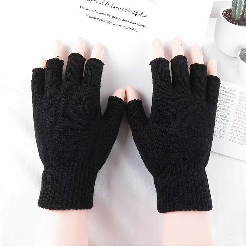 Осенние и зимние студенческие перчатки с половиной пальца, однотонные шерстяные перчатки в корейском стиле, хлопковые перчатки без пальцев, зимние теплые шерстяные перчатки