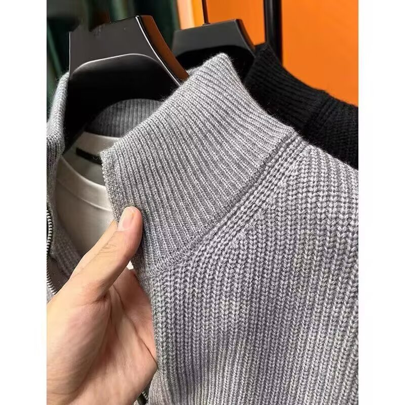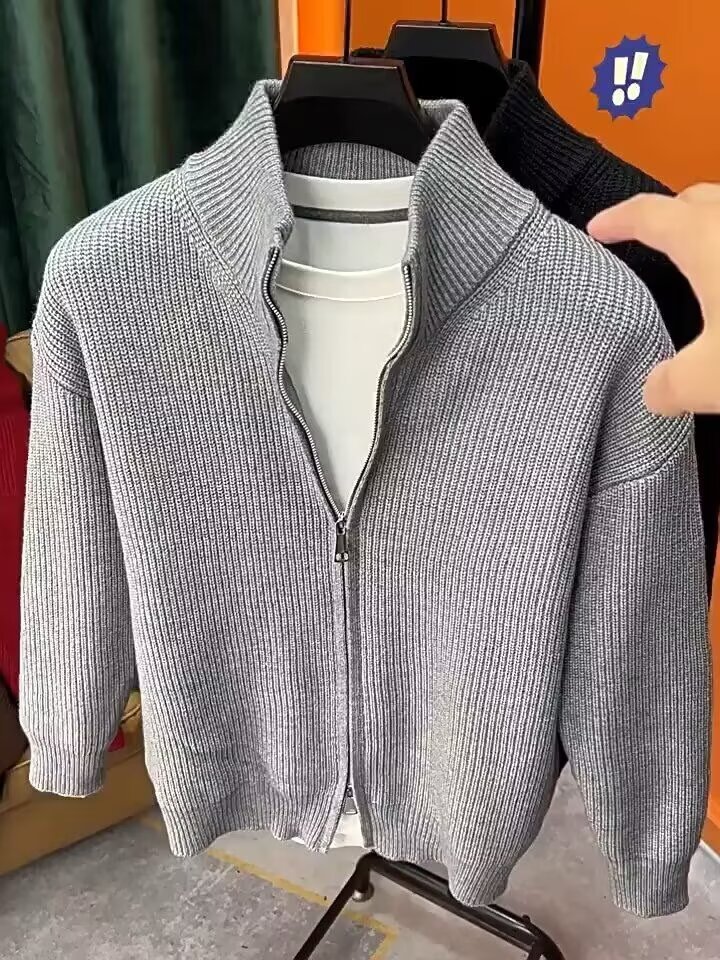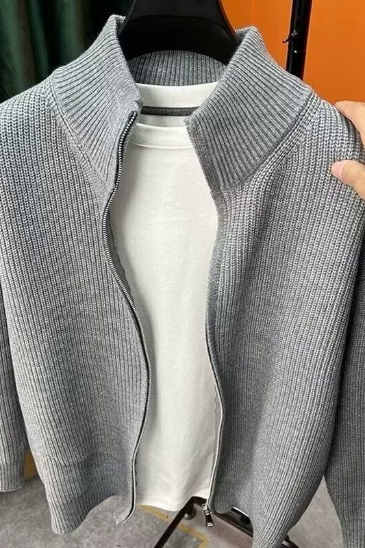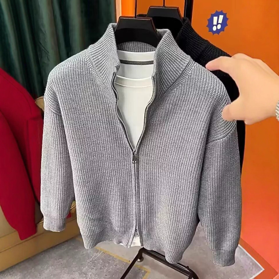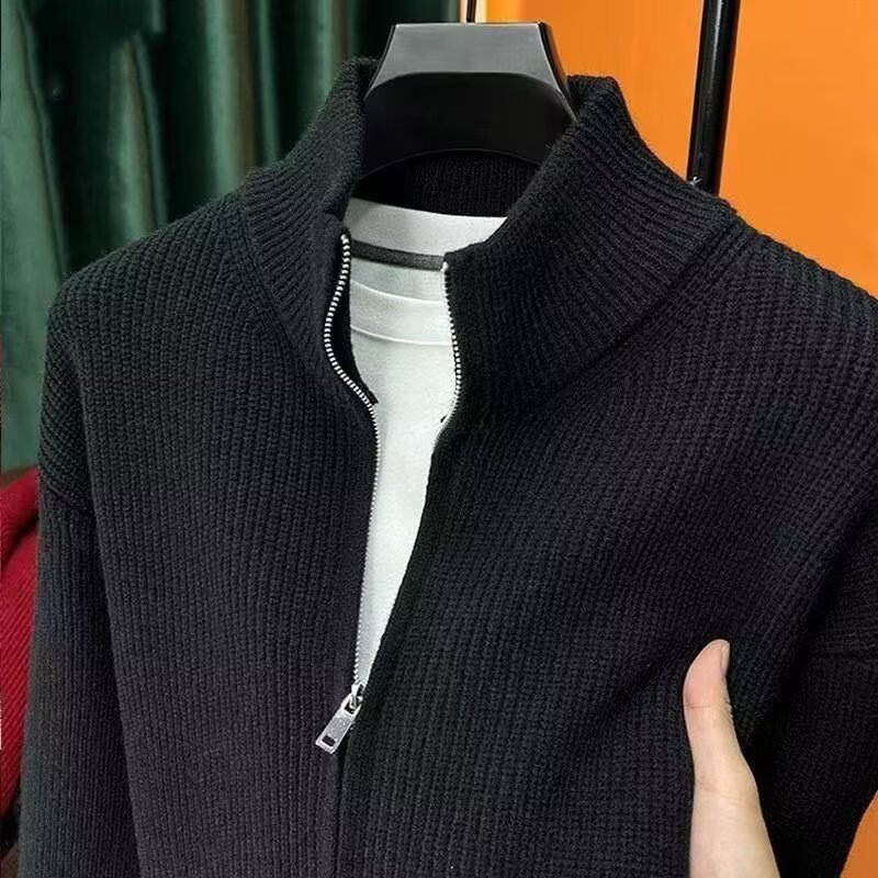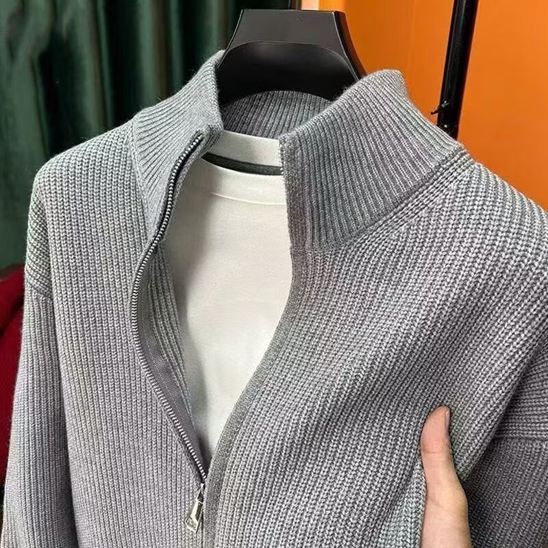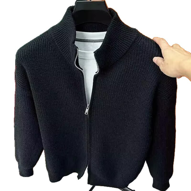 Кардиган, однотонный свитер на молнии, мужской универсальный трикотаж, осенне-зимняя тонкая куртка, мужская верхняя одежда с воротником-стойкой, полувысокая верхняя одежда
