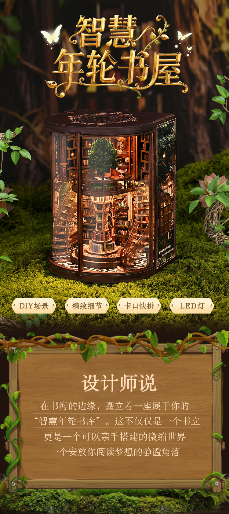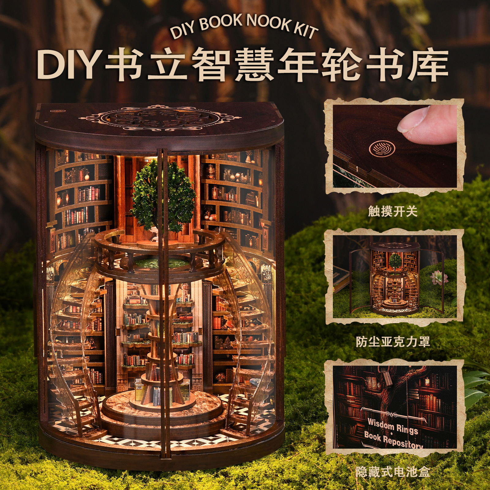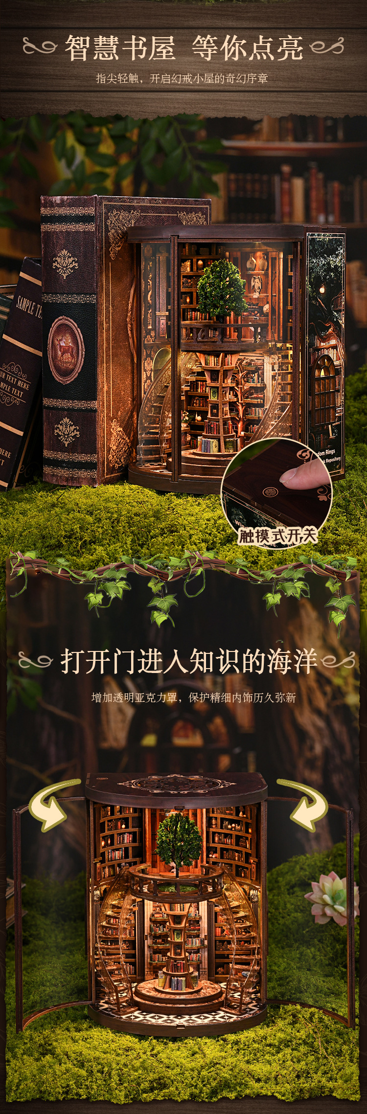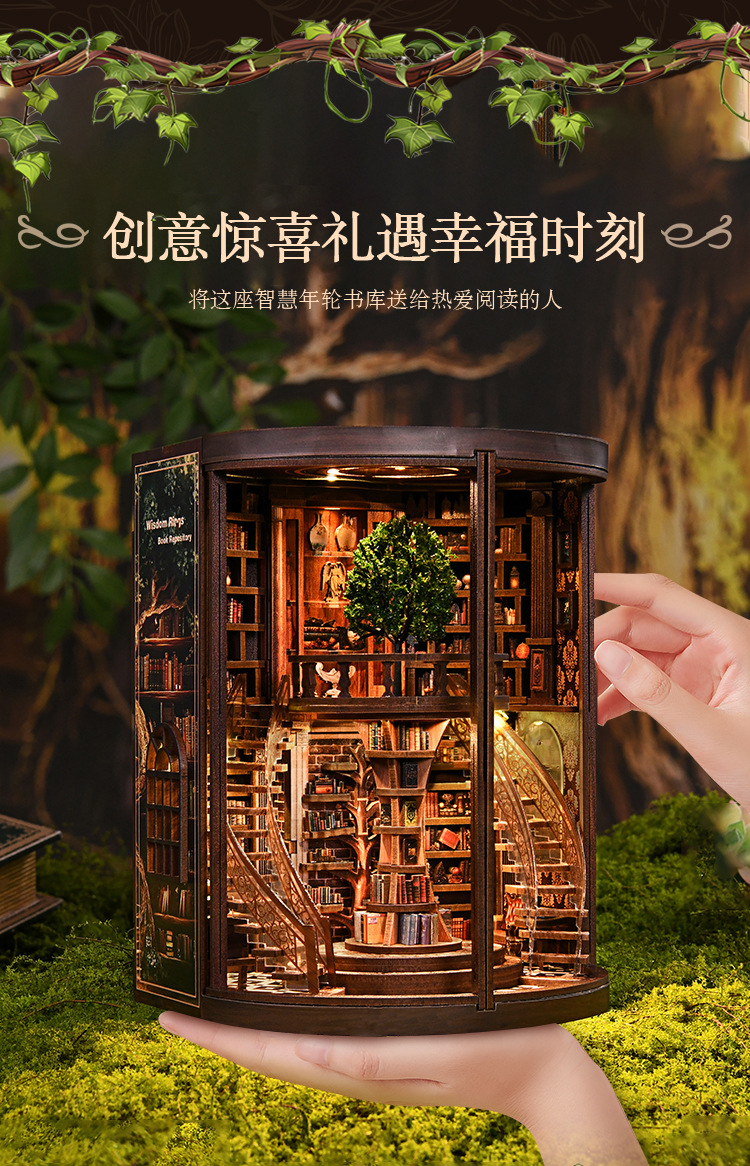 Кросс-бордерный новый продукт: умное кольцо для роста, подставка для книг, DIY домик, 3D стерео, ручная сборка, деревянная подставка для книг, DIY книжный домик