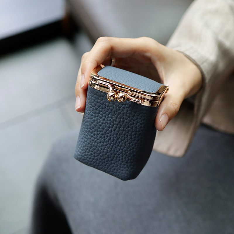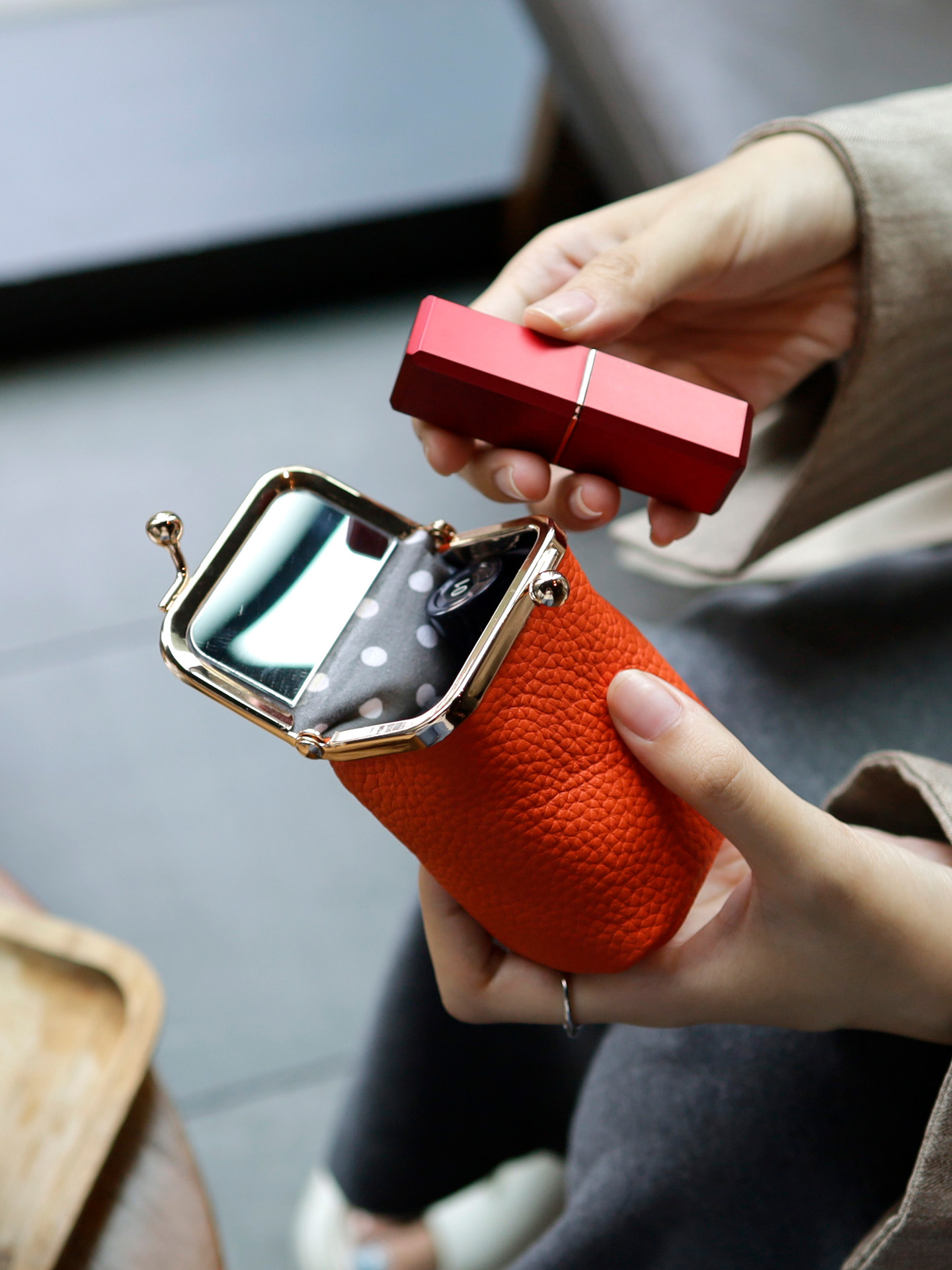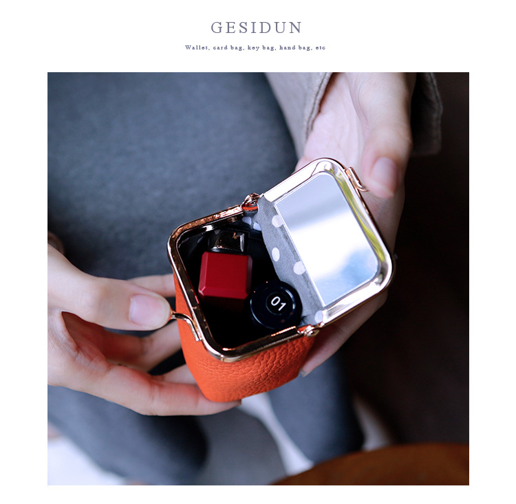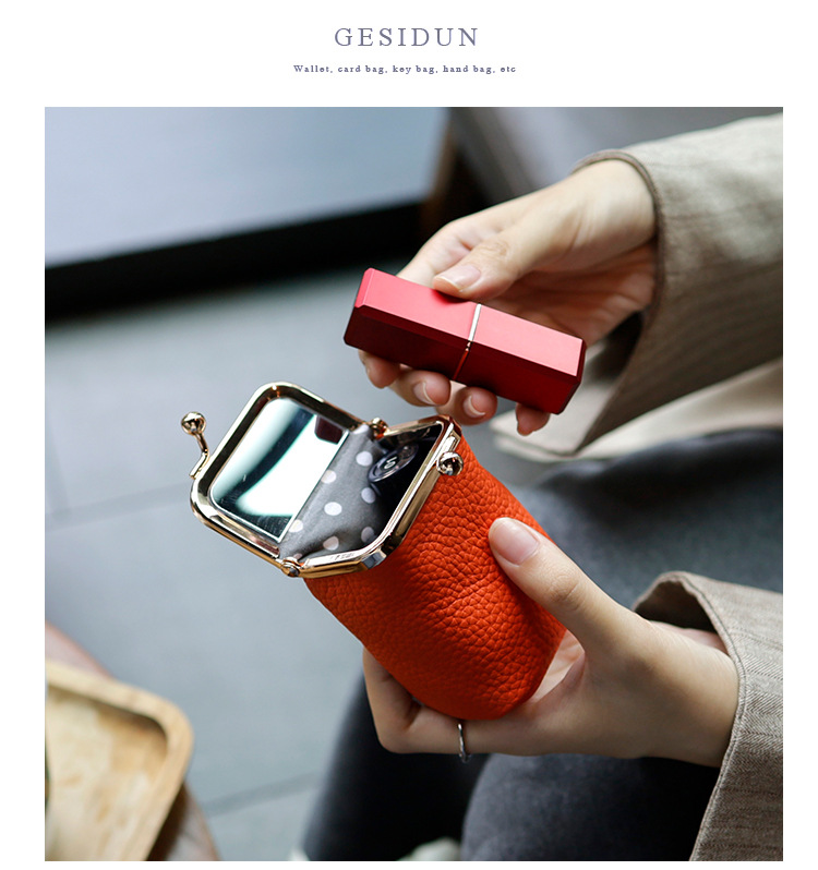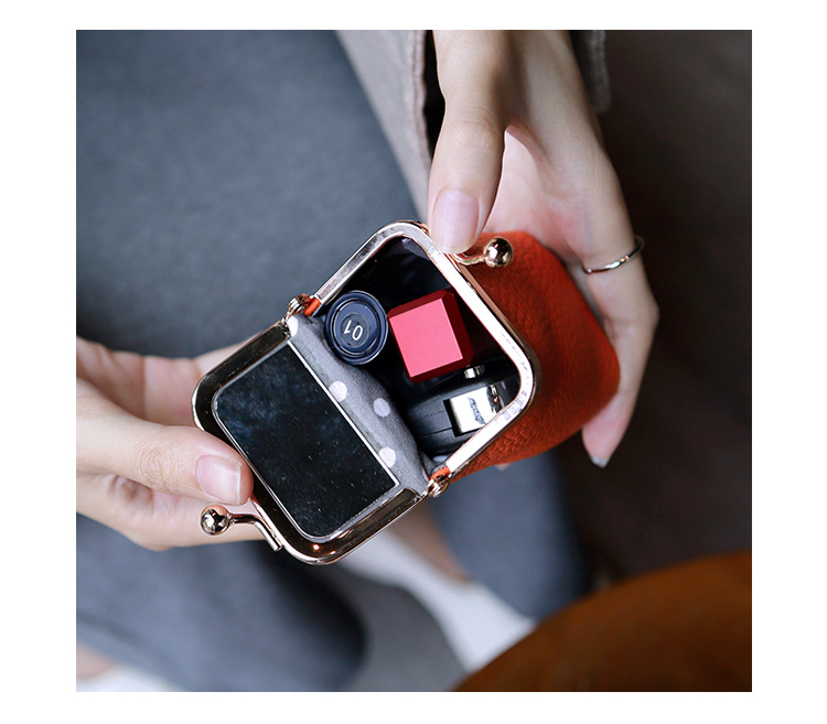 Трансграничная оптовая продажа, сумка для губной помады из натуральной кожи с зеркалом для макияжа, портативная сумка для хранения наушников первого слоя из воловьей кожи, оптовая продажа