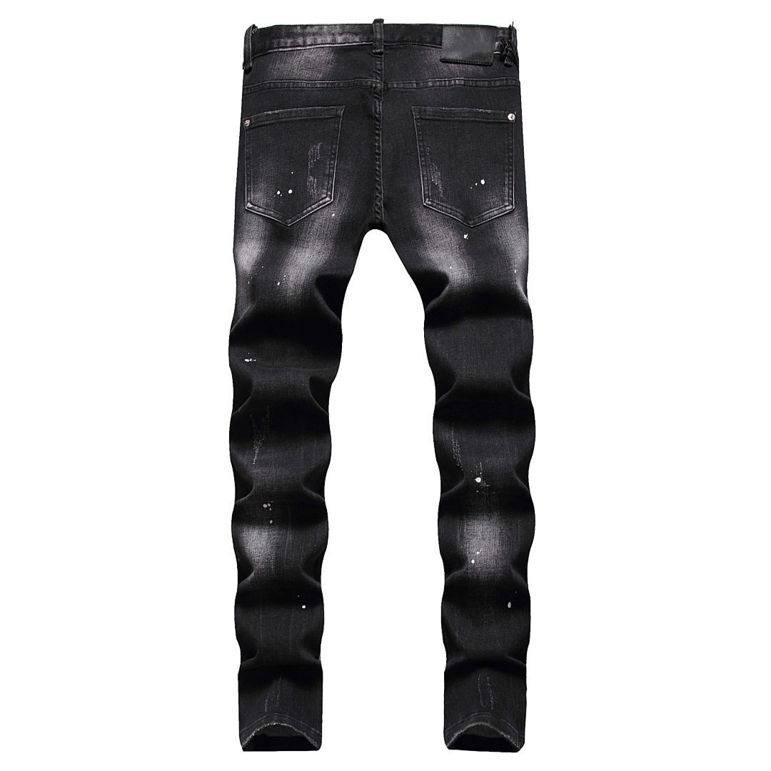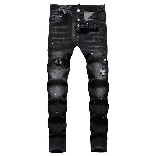 Новые трансграничные рваные джинсы в европейском и американском стиле с разбрызганными чернилами в стиле ночного клуба, стильные мужские облегающие джинсы для молодых мужчин, мужские брюки