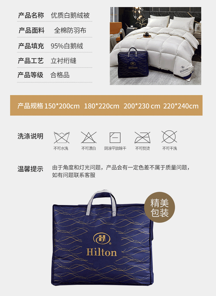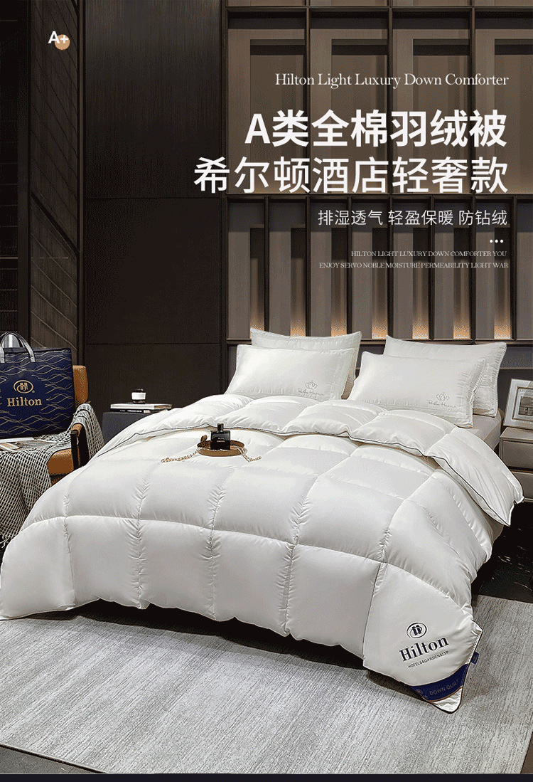 Пуховое одеяло Hilton, класс А, из 100% хлопка, с защитой от перьев, утолщенное, из чистого хлопка, зимнее одеяло, всесезонное одеяло, подарочное одеяло, наполнитель для одеяла
