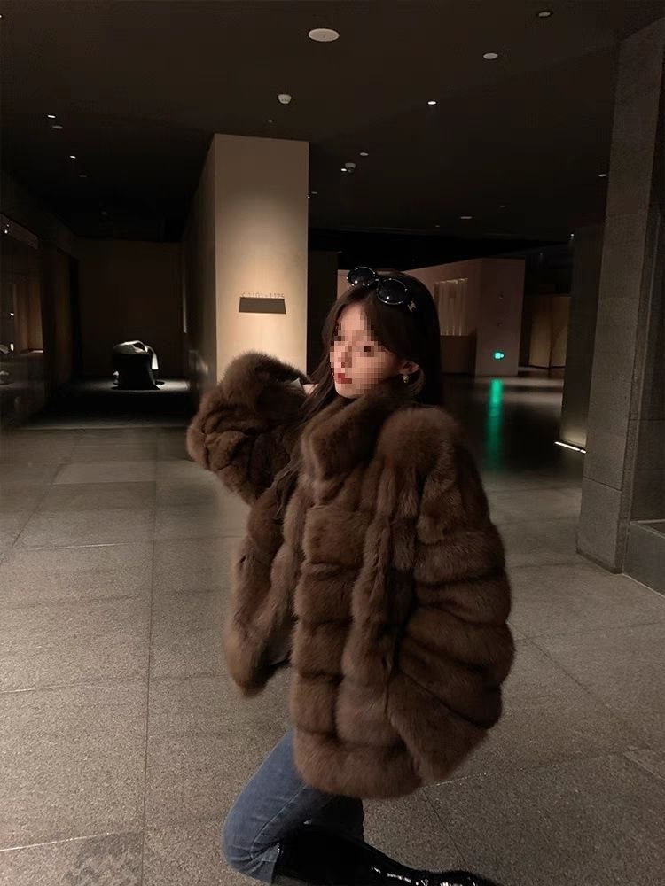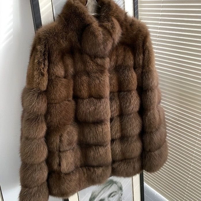 Женская утепленная куртка из искусственного меха с текстурой соболя, средней длины, в средневековом стиле, осень-зима 2025 года.