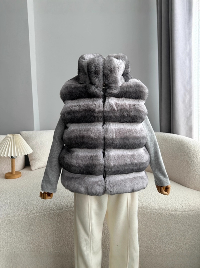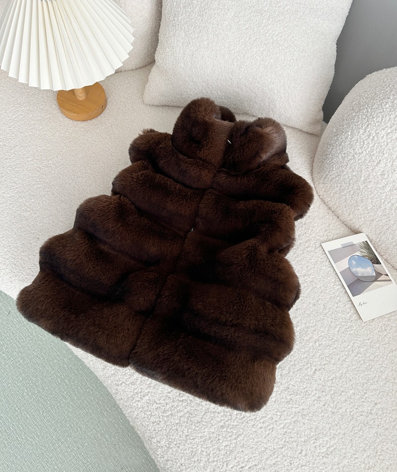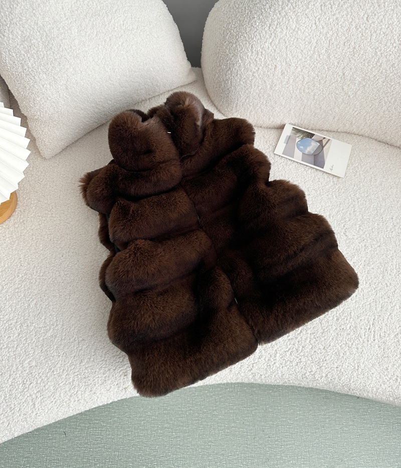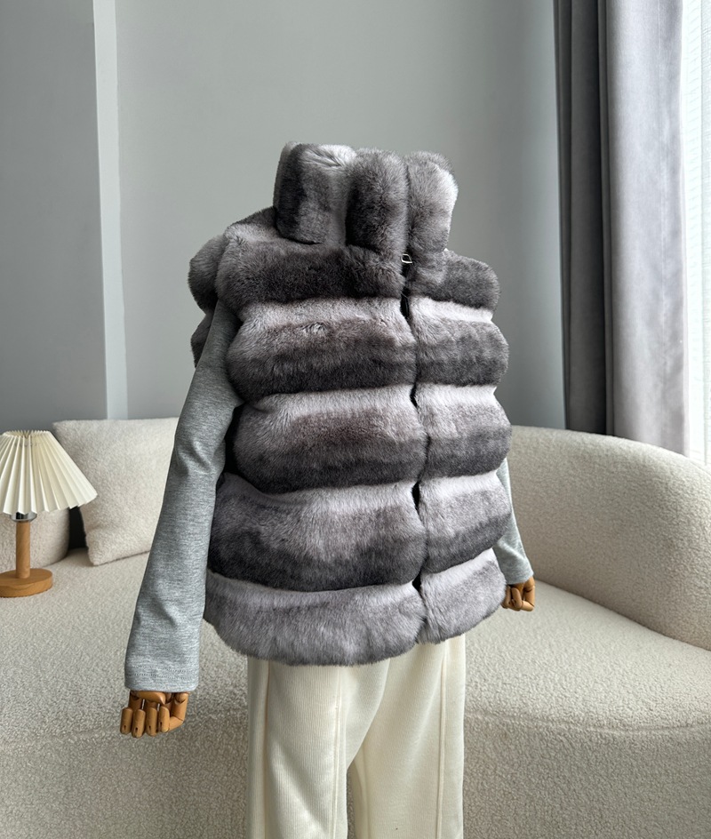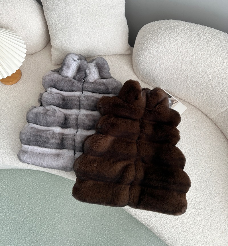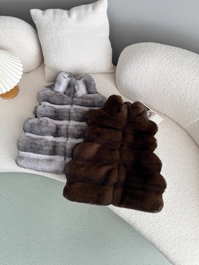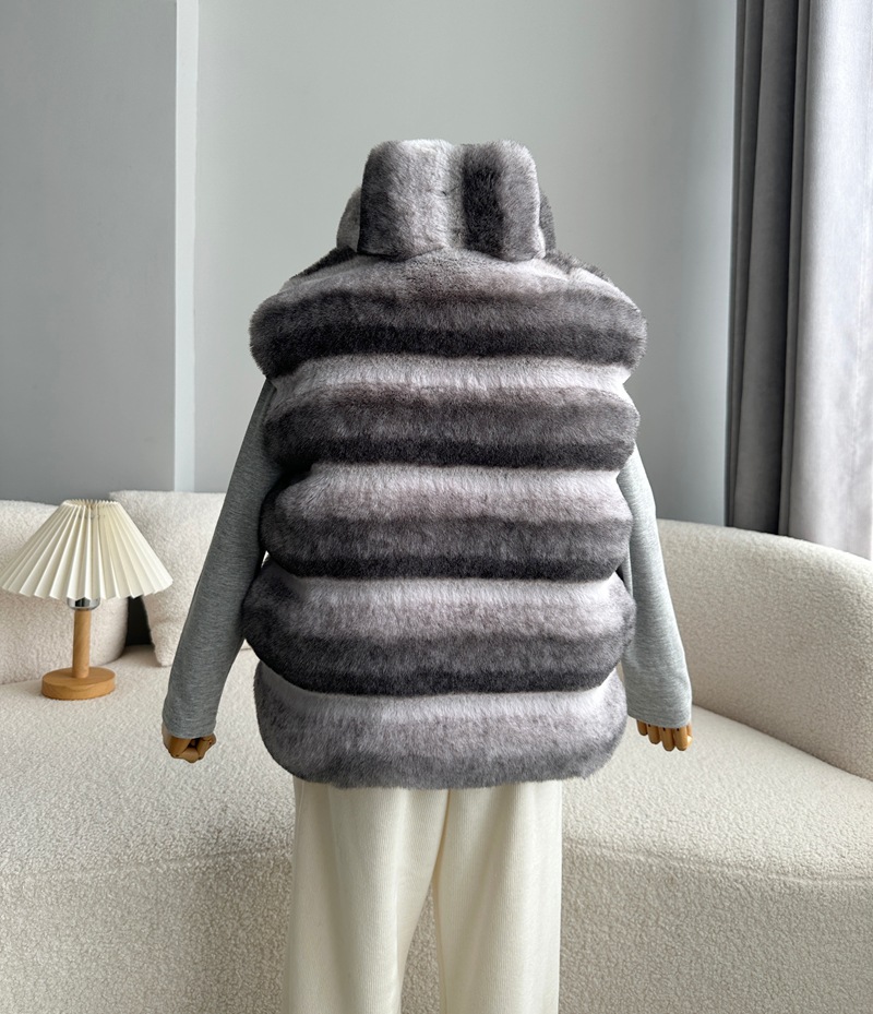 Жилет из имитации меха кролика рекса с узором шиншиллы, мягкий плюш, импортный, осень-зима 2025