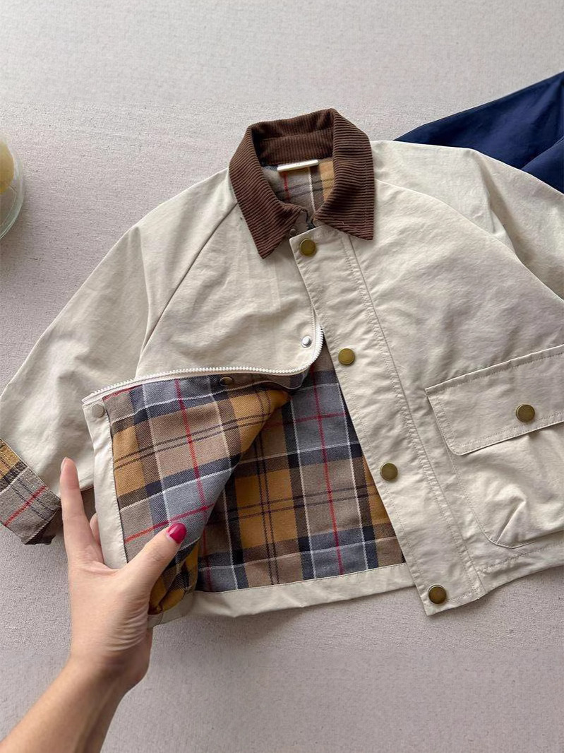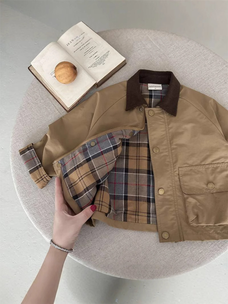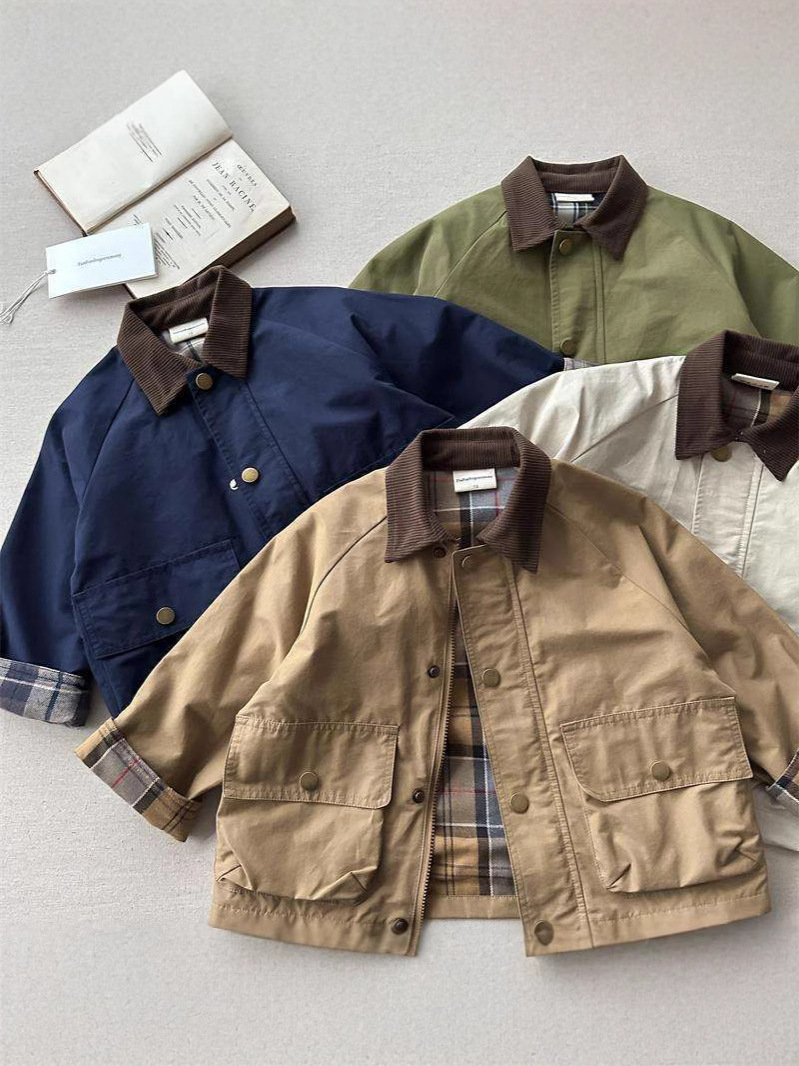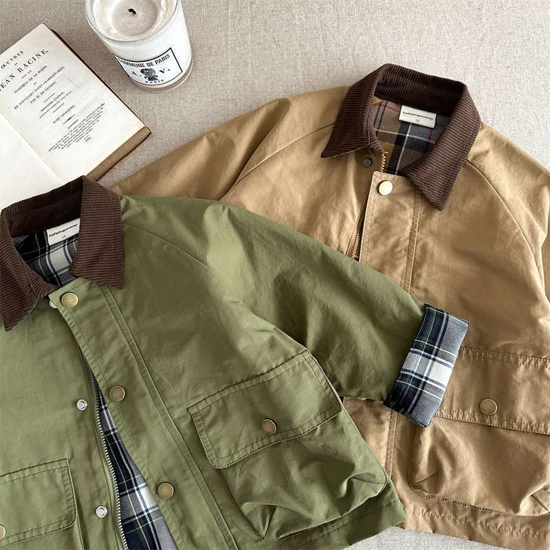 Детская весенне-осенняя куртка 2026 года: модная клетчатая куртка-ветровка в корейском и японском стиле для мальчиков и девочек, классическая стильная модель для детей